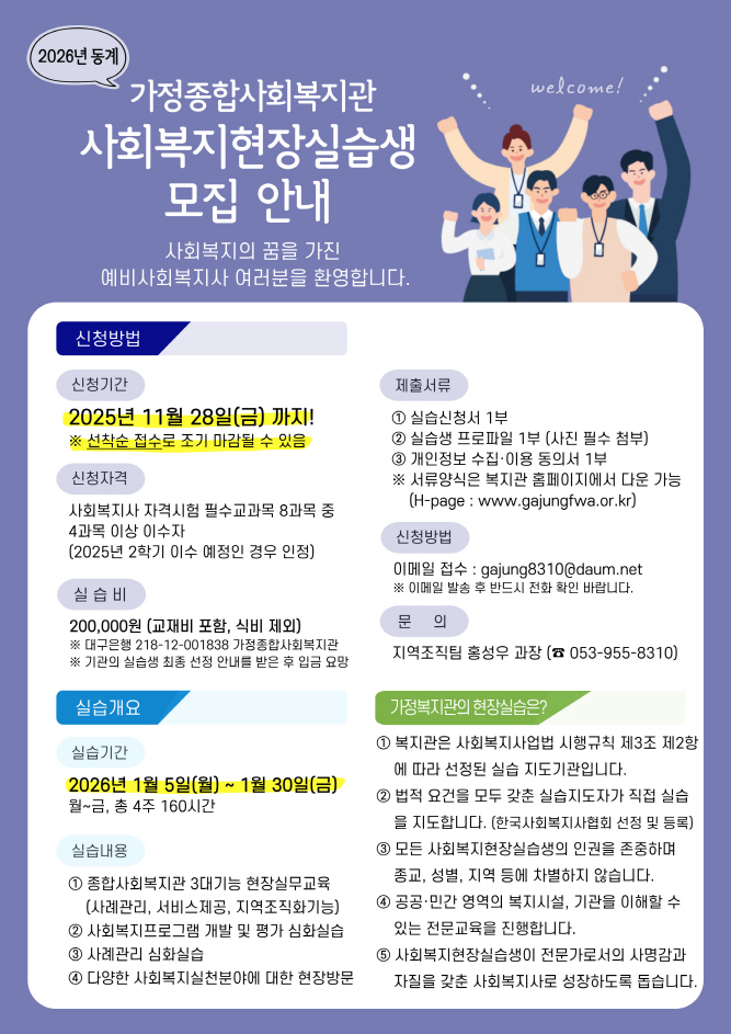 | [¸ðÁýÁß] 2026³â µ¿°è »çȸº¹ÁöÇöÀå½Ç½À»ý ¸ðÁý |